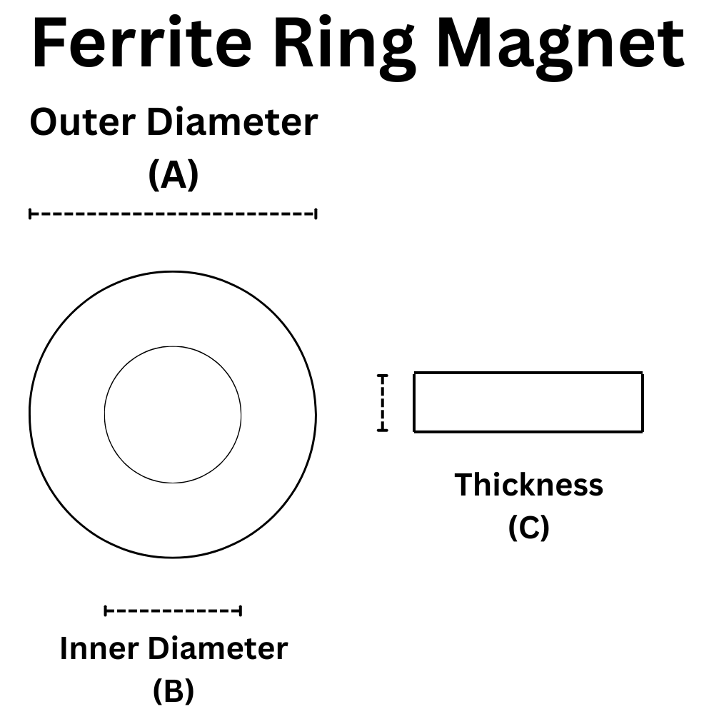 At Everest Magnetics, we offer high-quality Ferrite Ring Magnets (also known as ceramic ring magnets), widely used for their reliable performance, cost-efficiency, and resistance to demagnetization. Made from strontium or barium ferrite, these magnets feature a central hole that makes them ideal for mounting on shafts or integration into assemblies.