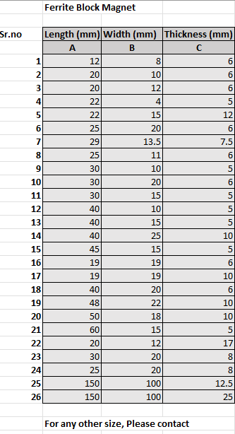 Whether you need small precision blocks or large industrial sizes, Everest Magnetics can supply standard or custom ferrite block magnets to meet your exact requirements—at competitive prices and consistent quality.